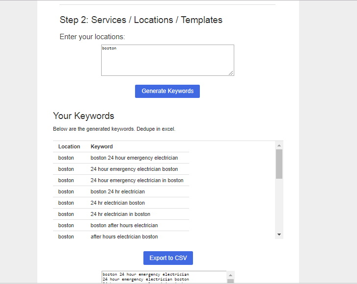 For instance, when I look for electrician in boston, the tool handed me with around good 30 keywords that my potential customers type often.